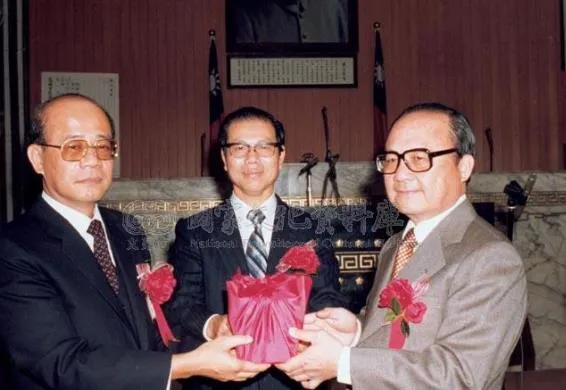 1981年,陳田錨(左)出任改制後的高雄市首屆市“議會”議長
