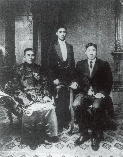 陳中和與兒子陳啓峯、陳啓貞合影