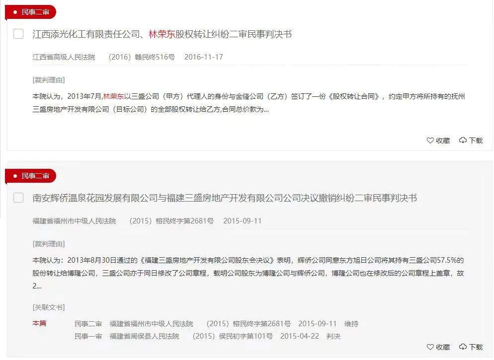根據媒體公開的信息,林榮濱與親哥林榮東的權益糾紛從2015年就開始了,此後雙方為了爭奪權益官司不斷。直到2022年,林榮東還將親弟弟林榮濱及三盛控股等關聯方告上法庭,索賠14億。從公開信息來看,這場官司是否已經揭出分曉還沒有定論。不過,從林榮濱眼下的處境,林榮東應該能夠明白,這場官司的結果實際上已經毫無意義。