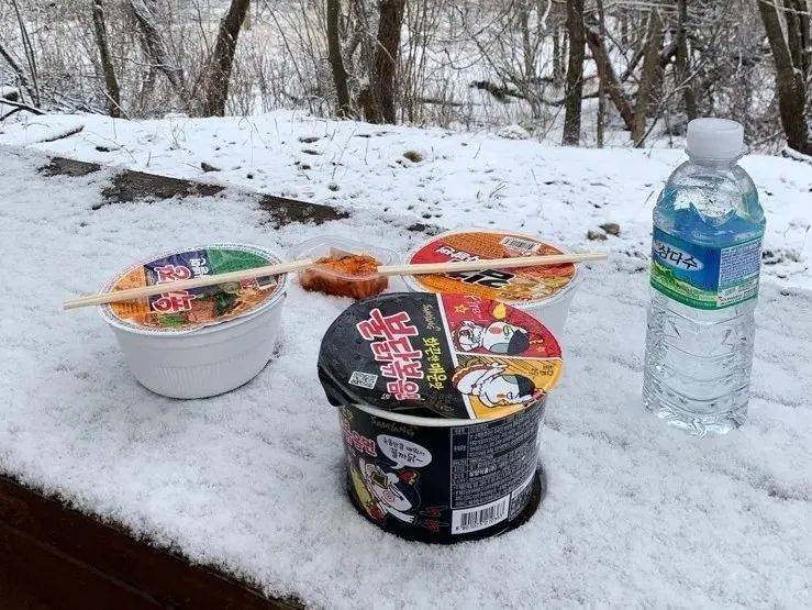 原來在韓國,登山者攜帶拉麪(一種裝在一次性盒子裏的方便麪)一邊爬山一邊吃是一種時尚。在社交媒體上曬出“山頂吃泡麪”的照片,更是成為韓國年輕人登上過漢拿山的證明。尤其是位於漢拿山上海拔1740米的一個休息點,很多登山者會選在那裏吃麪。