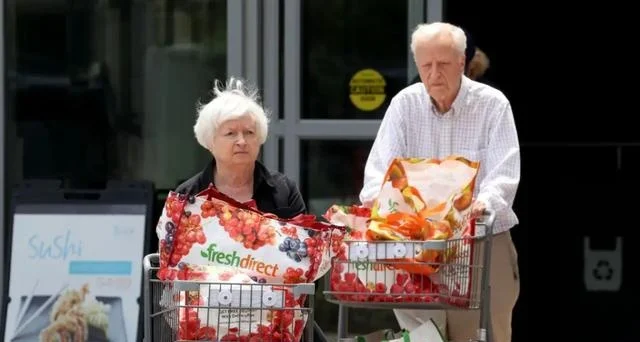77歲美國財長和丈夫超市購物,6名保鏢陪伴,無視食品飛漲遭批_風聞