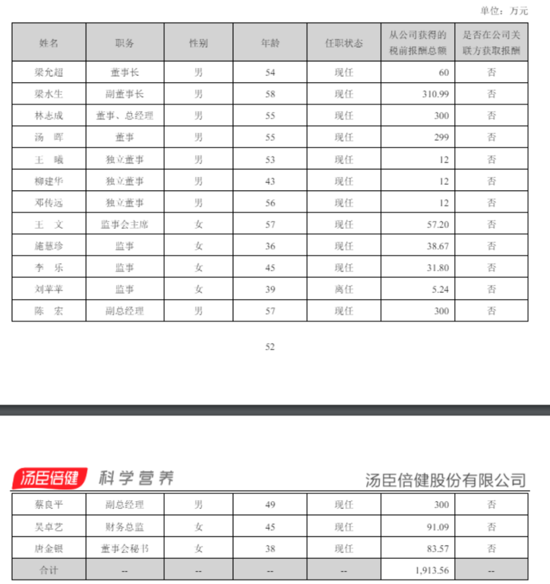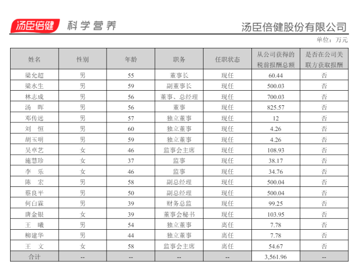 倒是湯臣倍健董事長梁允超的薪資基本沒動,因為他主要靠分紅麼,區區百萬級的薪酬與上億元的分紅,壓根不在一個水平線上。