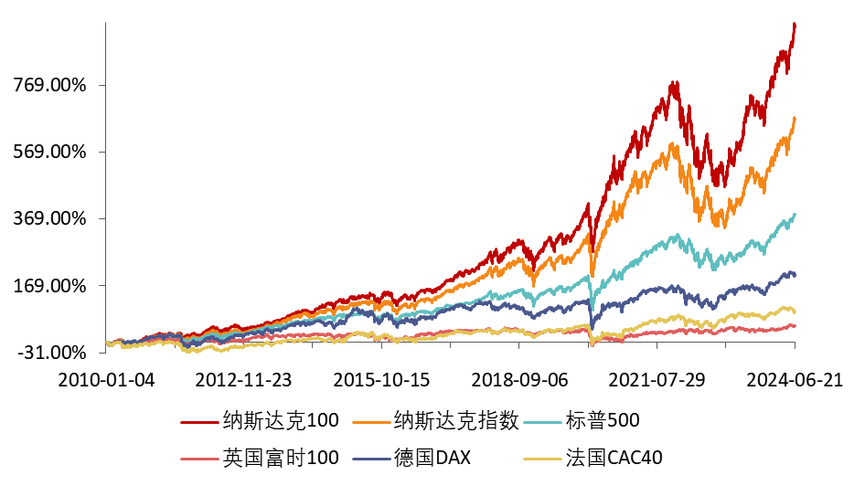 來源:Wind,統計區間2010.1.1-2024.6.28。納斯達克100指數發佈於1985年2月1日,指數過往業績不代表未來表現。