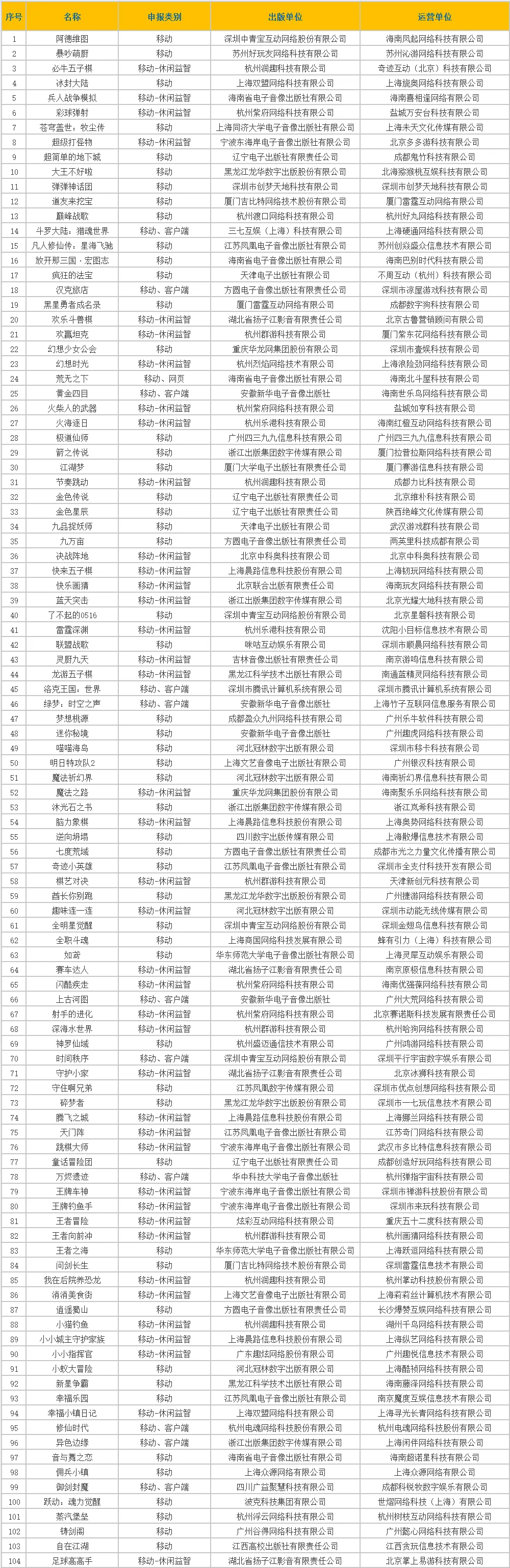 6月遊戲版號審批公佈,共計104款