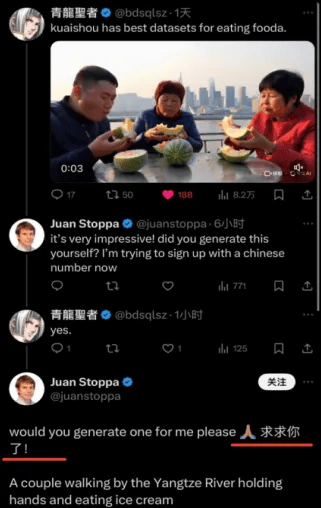 此前老外為了尋求快手可靈 AI 的測試資格