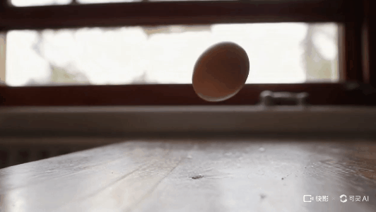 ( 提示詞:The egg fell from the table and broke on the ground,Slow-motion, close-up shot, Natural light from a window, Suspenseful, anticipation building)