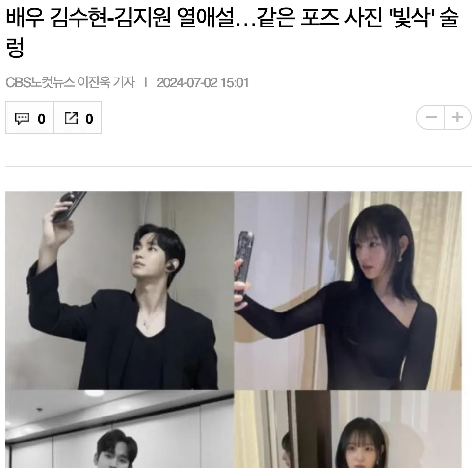 7月1日,金秀賢更新ins,發了幾張亞洲粉絲見面會上拍的照片,和金智媛6月26日出席台灣舉辦的時尚品牌活動時發的ins照片動作出奇類似,而且兩人都是黑色系,粉絲相當興奮。