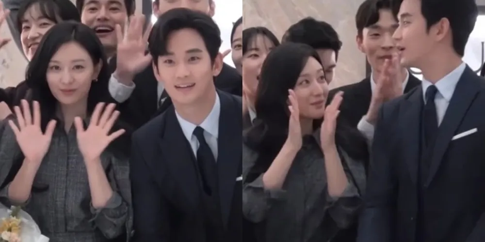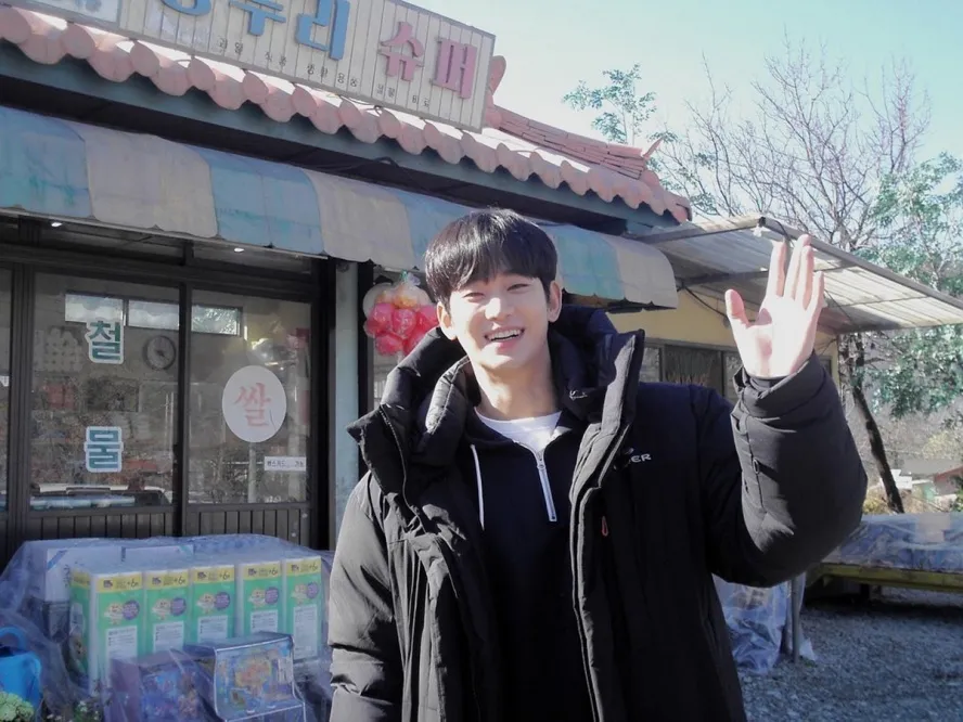 金智媛回國當天,金秀賢在ins上發了他劇中站在“龍頭裏超市”前揮手的照片,被粉絲認為是在歡迎老婆回家…