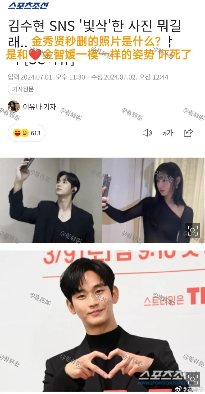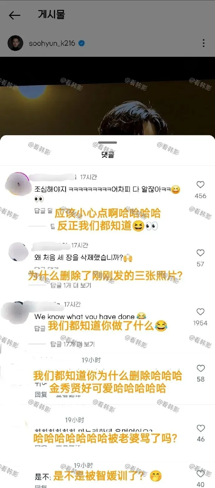 可疑的是金秀賢很快就把3張照片刪除,更被認為是欲蓋彌彰…