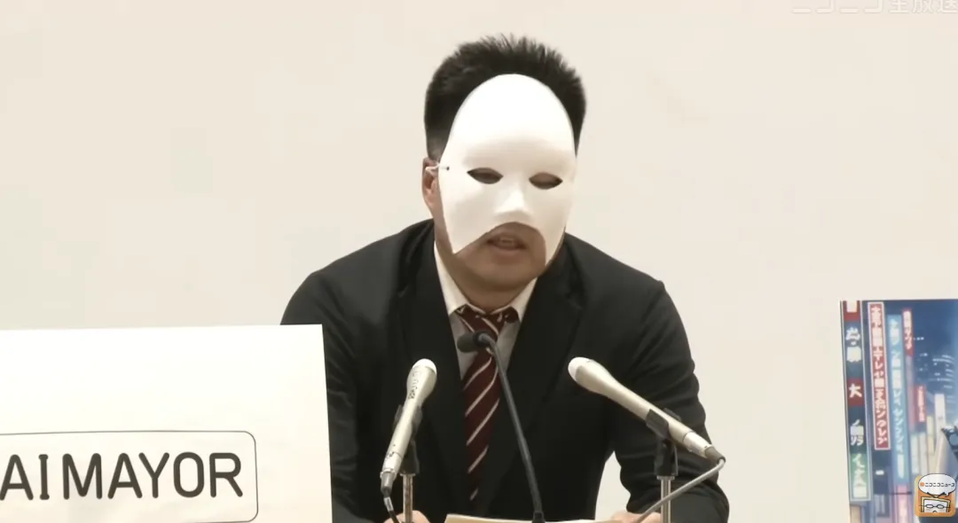 比如,戴着面具自稱AI市長的候選人。