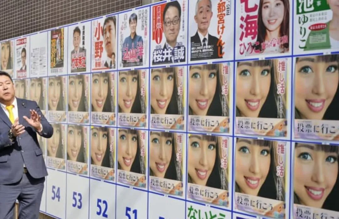 一時間,東京街頭貼滿了大量離奇的“選舉人”海報。