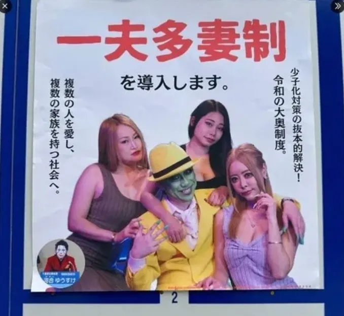 為了解決日本少子化的趨勢,他公然喊出了推行一夫多妻制的建議。