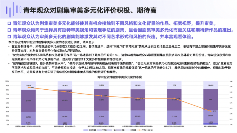 不僅如此,清華大學影視傳播研究中心近日發佈的《中國劇集創新發展與審美多元化研究報告》顯示:青年觀眾渴望看到劇情新穎、角色設定獨特、題材多樣化的劇集,特別是懸疑劇、古偶劇和言情劇,但希望這些劇集能夠擺脱老套和俗氣的情節,更加貼近現實,反映社會問題,同時具有深度和內涵。