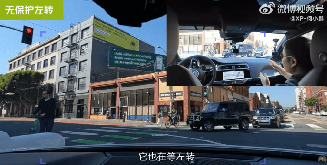 從試駕視頻可以看到,舊金山交通情況與國內不同,路上VRU(行人、騎自行車者和騎摩托車的人等其他弱勢道路使用者)比較少,試駕路段也沒有碰到行人搶道。因此對VRU感知等其他智能駕駛技術的挑戰較小,包括要在複雜的道路環境中識別出行人和騎車的人等等。
