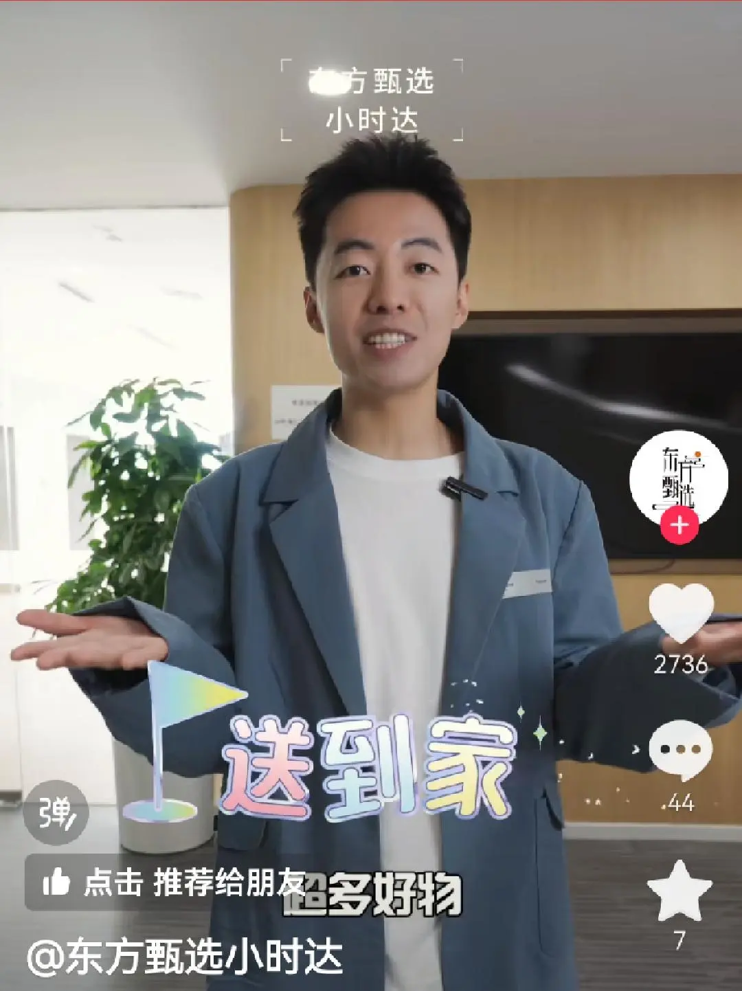 另一邊,東方甄選也在用矩陣號擴大可能獲取的流量,以圖賣出更多的貨,擴展更多的品類。同時,東方甄選還在今年入局了近場電商,和眾多主播開啓了“小時達”業務。