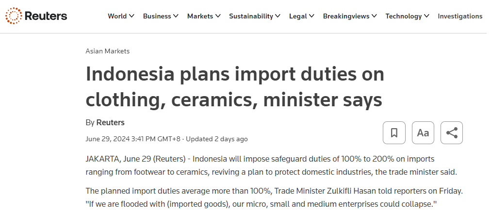 6. 但是,靠抓生產從原理上就不可能解決問題,需要的全球份額太多,已經引發了巨大的矛盾。最近連關係不錯的印尼,商務部長宣稱要對中國商品加100%-200%的關税了,保護本國商品生產。出路很簡單,其實已有不錯的效果了,就是大買其它國家的商品。