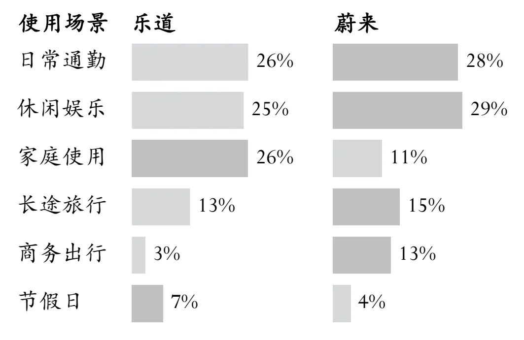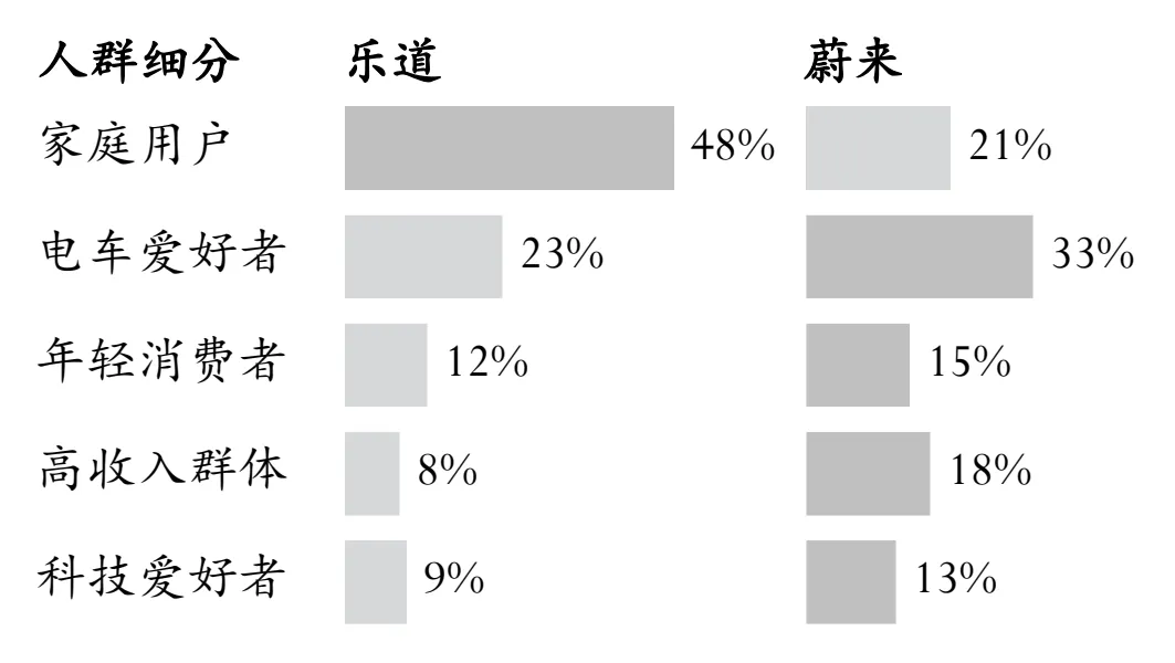 樂道的核心用户羣體是家庭用户,而蔚來以中高收入的年輕消費者為主。