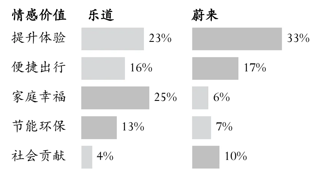 樂道為消費者提供的情感價值主要是家庭幸福出行,主品牌蔚來則是提升消費者的駕乘體驗。