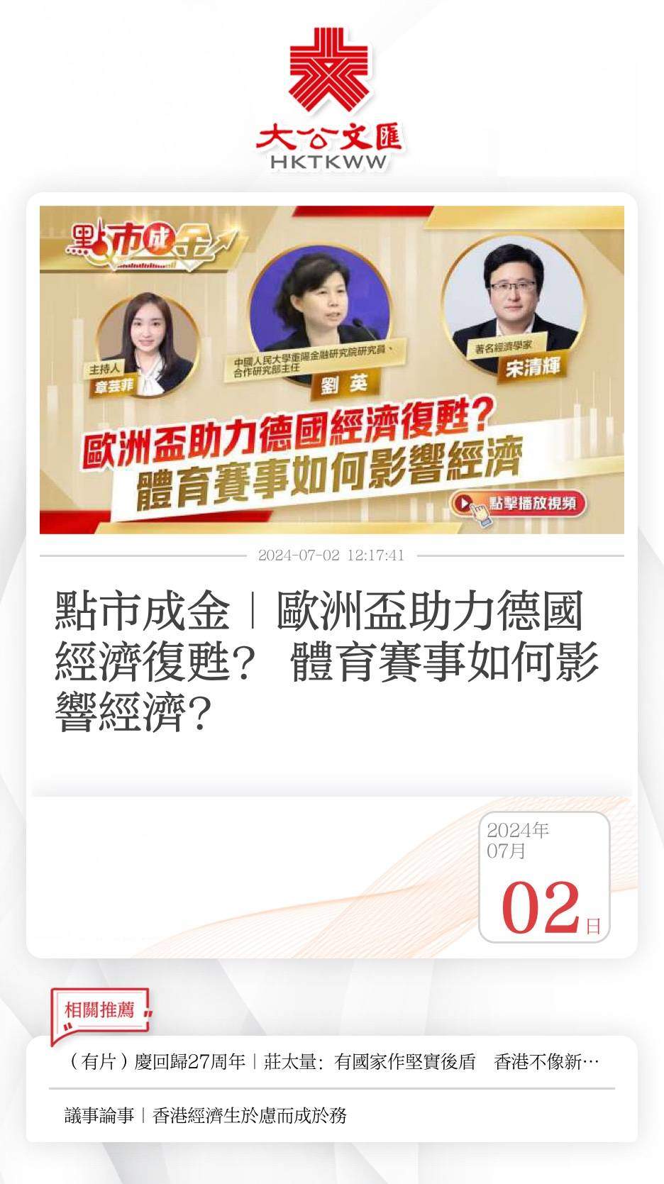 點市成金|宋清輝等專家:歐洲盃助力德國經濟復甦? 體育賽事如何影響經濟_風聞