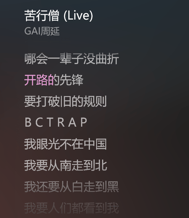 以Gai為例,《苦行僧》算是早期經典了,他唱: