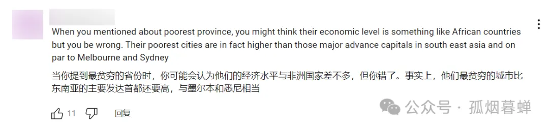 “當你提到中國最貧窮的省份時,你可能會認為它們的經濟水平跟非洲國家的城市差不多。但你錯了,事實上,中國最貧窮的城市比很多東南亞國家的首都發達,也就澳大利亞的墨爾本和悉尼等城市能比一比了。”