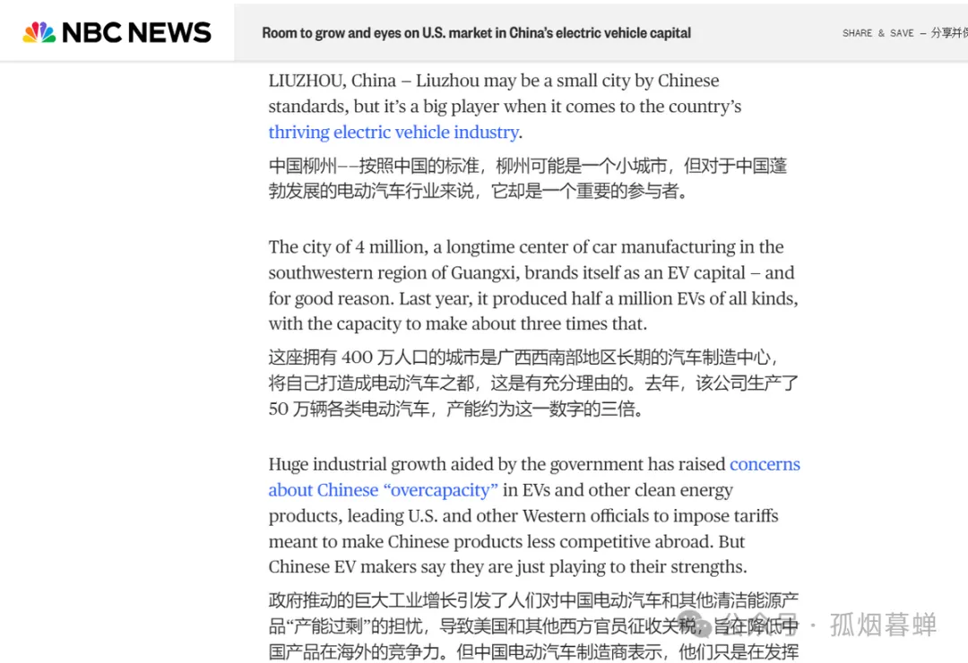 除了NBC新聞的官網,它們還把這則新聞報道的相關短視頻發到了YouTube上,並給這段短視頻擬了個相當之具有美國標題黨特色的新題目——《中國最貧困省份之一的一個城市,現如今正大力電動車行業》(CITY IN ONE OF CHINA’S POOREST PROVINCES NOW LEADING ELECTRIC VEHICLE PRODUCTION)