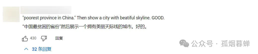 “你們跟我説這是‘中國最貧困的省份’,完了卻在視頻中給我展示了一座擁有漂亮天際線的現代化都市?好樣的NBC,低級黑、高級紅是吧?”