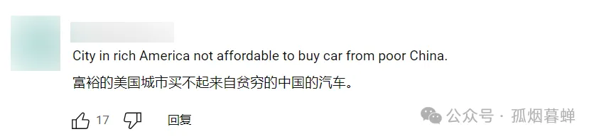 “呵呵噠,即便是富裕美國城市的居民,也買不起來自貧窮中國省份造的汽車呢,簡直笑死個人。”