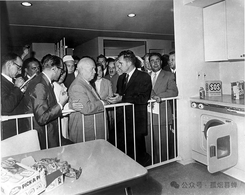 1959年7月,美國國家展覽會在莫斯科隆重開幕。圍繞着展覽會上展示的各種先進的美國廚房用具,時年46歲的美國副總統尼克松和時年65歲的蘇共第一書記赫魯曉夫展開了一場別開生面的辯論賽。