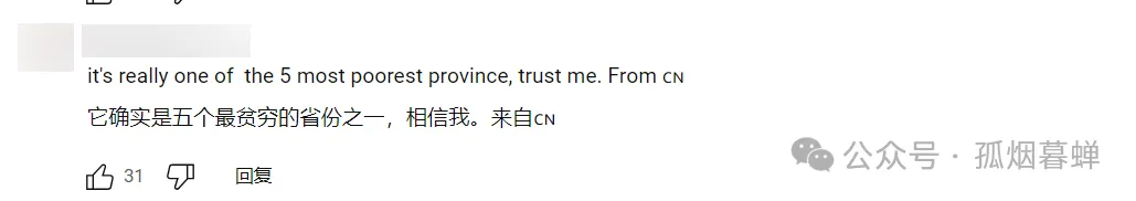 “信不信由你們,它確實是全中國最貧窮的5個省份之一。相信我,我就是中國人。”
