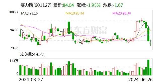 放量近百億元 賽力斯股價罕見跌停報85.71元