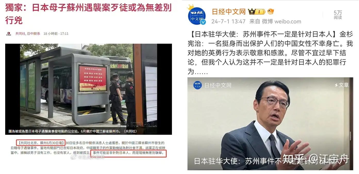 這次挺身而出的胡大姐是蘇州人,蘇州寒山寺有個鐘樓,大師父每到跨年就要表演絕活,不看鐘不看錶盲敲108下,敲完正好新年的零點。就這口記錄了“夜半鐘聲到客船”的唐鍾,或曰倭寇襲擾、或曰宵小盜賣,就生生給流失到日本去了,替代的明鍾又被毀於倭寇戰火。元代的《寒山拾得圖》也流落到了日本。可就是這樣,寒山寺在今天依然在續寫着中日友好而非仇恨,寒山寺是眾多日本人光臨中國的首選,每年祈福的鐘聲依然包容着真誠的日本友人[[5]](https://www.zhihu.com/question/660370823/answer/3547923936)。這就是胡大姐家鄉的胸懷,也是中國老百姓的胸懷。