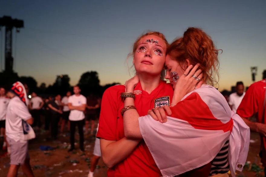 最好笑也最讓我感到欣慰的是英國球迷,和我的美國同事不一樣。我周圍一圈的英國同事大部分都是足球迷,都有自己支持的俱樂部,有曼聯,有切爾西等等。但是英格蘭的國家足球隊就是不爭氣,不知道為什麼雖然球隊內經常是巨星雲集,卻常常能踢得像一坨屎一樣。這難道不比中國隊更讓人生氣嗎?中國的國家隊球員許多的球技就像一坨屎一樣,所以也不冤枉。千萬不要以為我在這裏語言粗鄙。我的英國同事就是這樣罵的,包括許多女生,甚至罵得還要髒。英國足球時常打出的口號是“足球回家”,意思是英國是足球的發源地,希望英格蘭隊能夠奪冠圓夢。可惜的是,英格蘭隊的獎盃室裏面空空蕩蕩,從來沒有在任何的重大的世界比賽或者洲際比賽中獲得冠軍,除了一次66年的世界盃,那也是將近半個多世紀前的故事了。最要命的是,中國足球隊還算仁慈,因為已經讓一大批球迷死了心,如同我,基本不看。而英格蘭隊卻不斷撩撥球迷的靈魂,給人希望,卻不斷失敗。這種痛苦,從足球誕生以來就延續至今。我問英國同事們看英格蘭隊比賽的觀感,他們都面目猙獰地回答我,這是一種精神折磨。這種表情讓我印象深刻,而且英國球迷有一種強烈的失敗主義情緒,我們中國隊曾經有過“恐韓症”,而英格蘭的“恐德症”則絕對不相上下。至上一次歐洲盃幾乎半個世紀沒有贏過一次,逢德必敗。英國的足球界有句名言“足球的定義就是22名球員奔跑90分鐘,而最後德國獲勝的遊戲”。