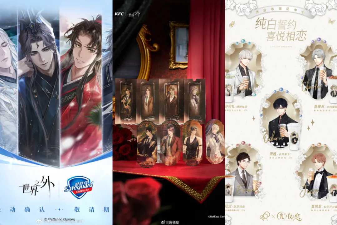 在乙遊聯名已經成為品牌營銷香餑餑的當下,網易的《世界之外》一天官宣八大品牌的聯名、《戀與製作人》開服至今聯名品牌多達幾十個,多款乙遊甚至是女性向遊戲的商業價值正在被逐漸挖掘,一些乙遊男主角人氣堪比明星。