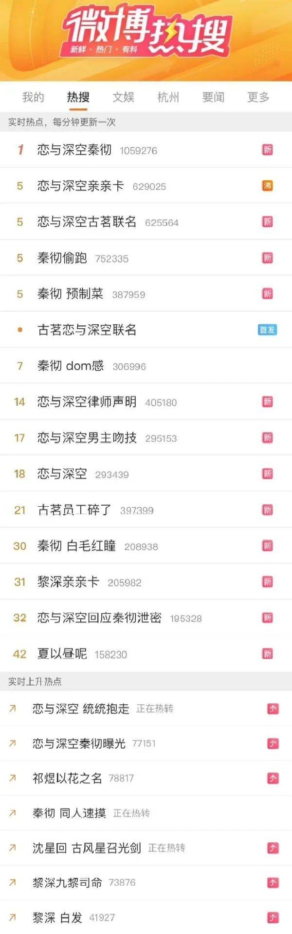 玩家整理的部分熱搜,圖源小紅書@今天好像沒睡好_