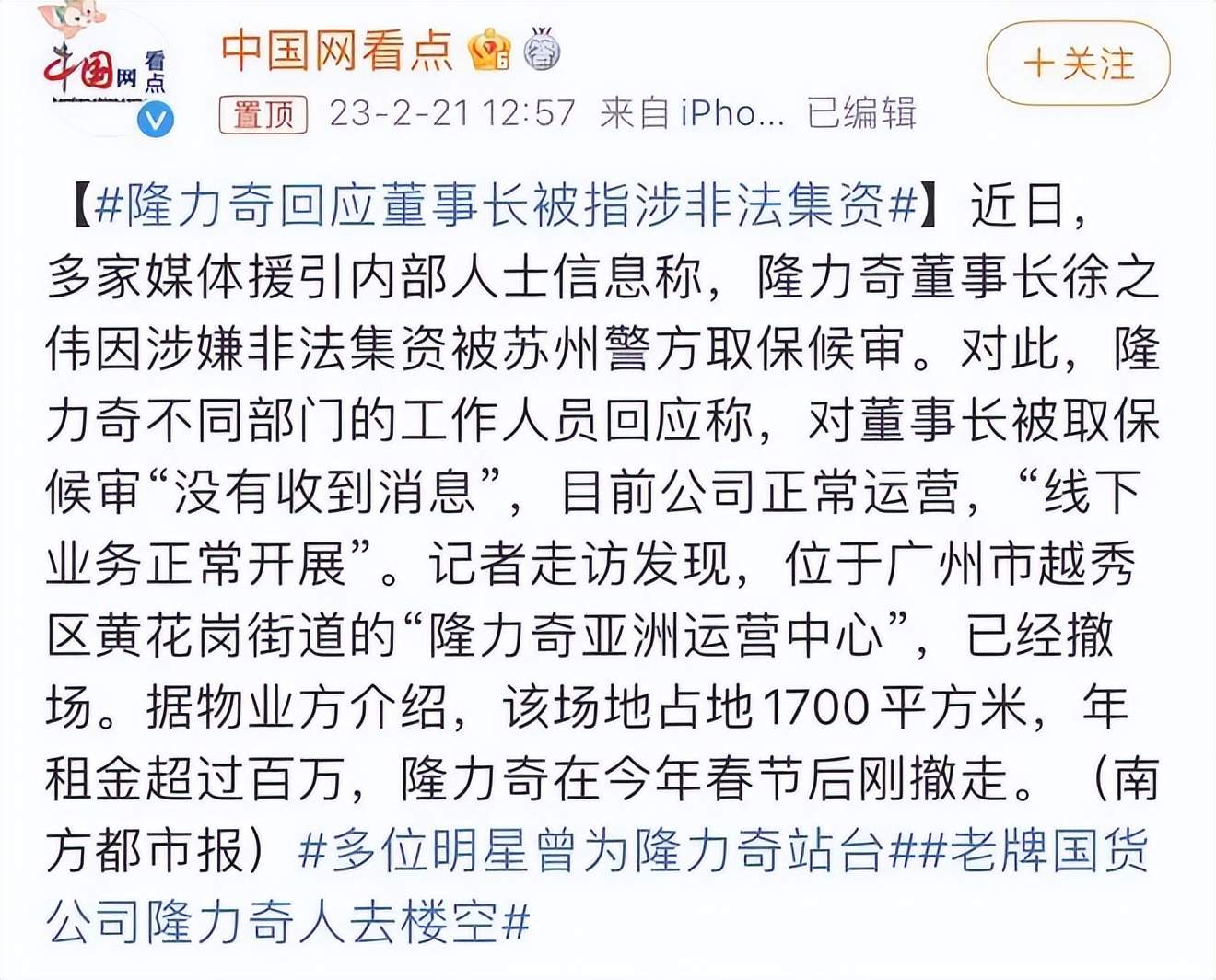 去年2月21日,“老牌國貨公司隆力奇人去樓空”的話題衝上熱搜後,很多網友留言惋惜。