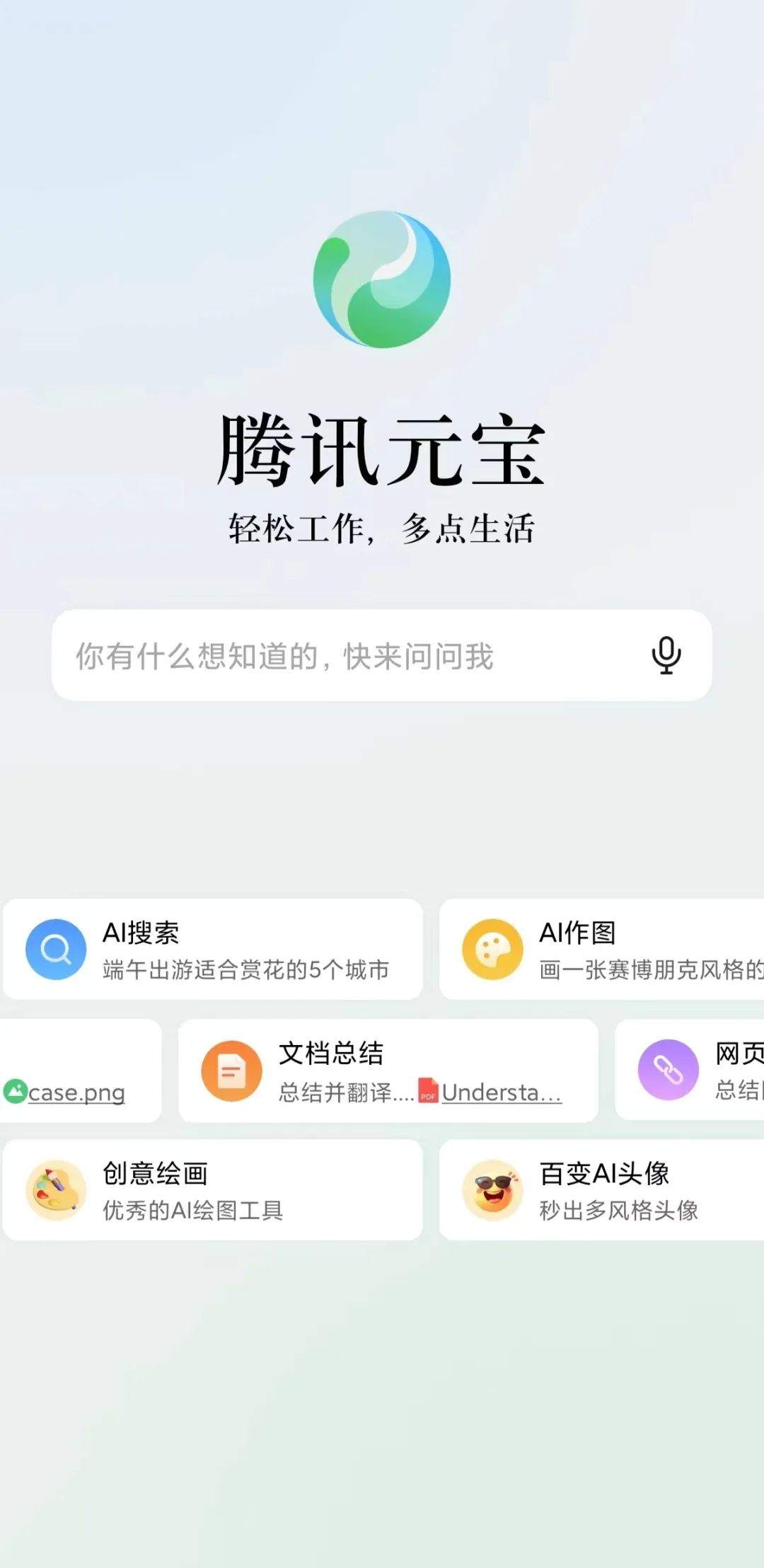 2024 年 5 月 30 日,騰訊推出基於混元大模型的 App——元寶,它的產品設計很簡潔,打開的第一屏,是一個搜索框,核心是先瞄準生產力場景,重塑信息的組織、交付。
