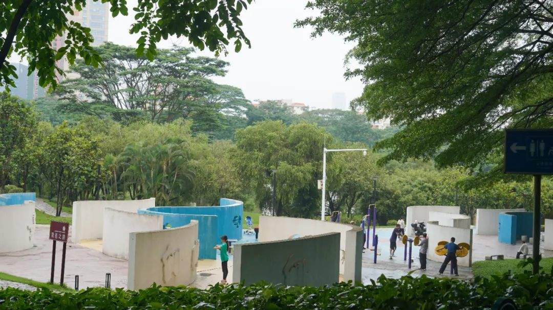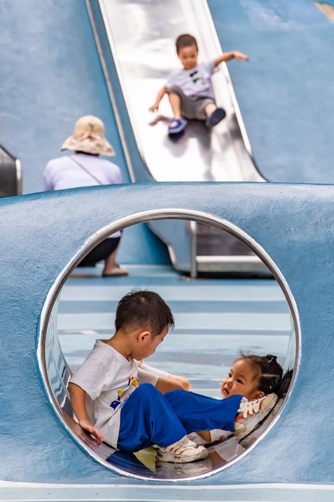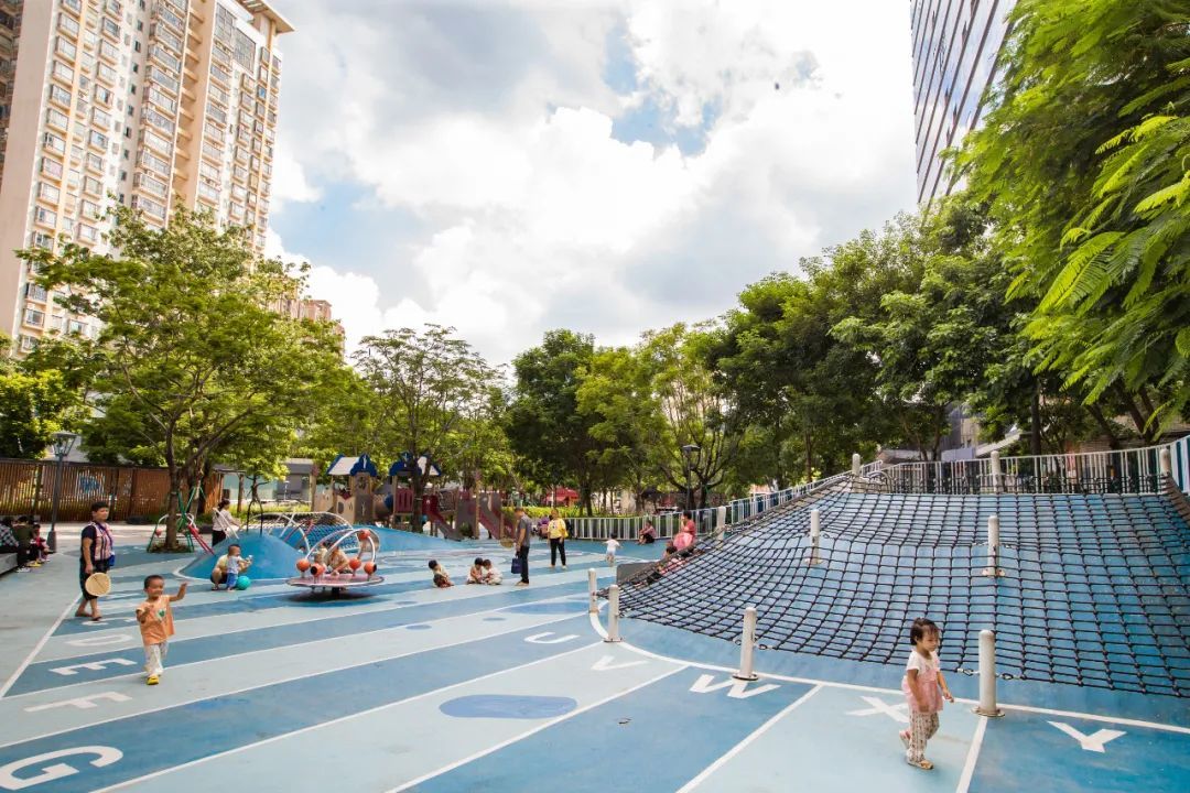 海洋藍為底色的兒童樂園,襯在鬱鬱葱葱的植被中相映成趣,孩子們歡樂暢玩,大人們樹蔭下閒聊……走進廣發片區的街心公園,一幅幸福生活的圖景映入眼簾。