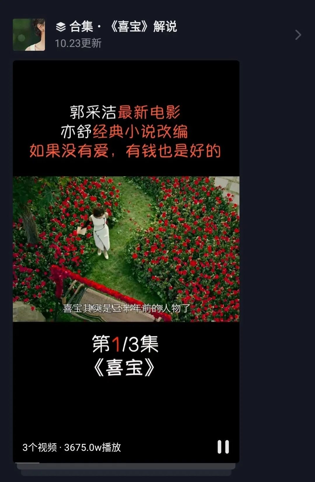 儘管風格完全不一致,但《小時代》恰恰是上一個十年的“年輕人產品”。當年上映時,它同樣差評如潮,但對原著有感情的粉絲仍舊買單,四部影片票房加起來接近18億。並且在後來的互聯網語境中,它的經典橋段和金句被無數的二創作者重新賦予了生命,成為了年輕人流行文化中的“聖經”。而它的基礎,是基於原著本身作為一代人的集體記憶是成立的。2020年上映的《喜寶》也是一個不多見的案例,它在特殊的市場環境下獲得了1.13億的票房,豆瓣評分僅3.3分。在沒有明星加持的情況下,它依靠亦舒金句在短視頻平台重新躥紅而吸引眼球。其購票用户畫像也以三四線城市的女性為主,同樣是受眾人羣找得十分精準的產品思路。