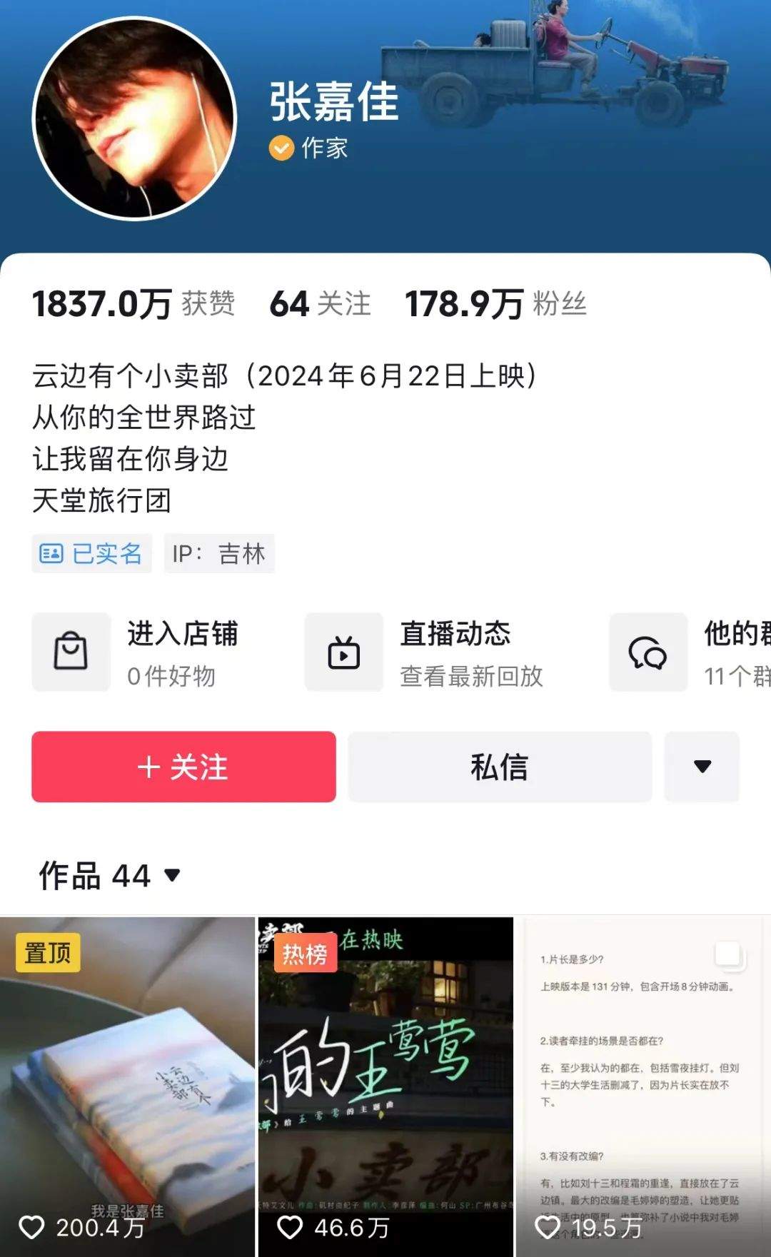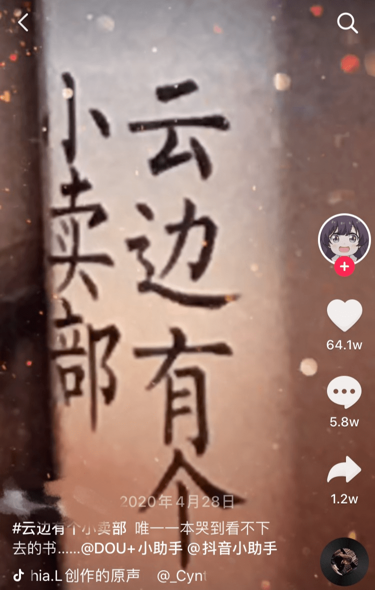 特殊時期延長了學生在家的假期,幫助了該書在學生羣體中的進一步傳播。5月6月、10月11月,兩個銷量高峯期來臨之前,分別是延長的寒假和暑假。而學生羣體購書之後,存在普遍的互相借閲的情況,實際輻射的受眾比銷量顯示的數字更要高出不少。張嘉佳本人也在當年8月入駐抖音,9月1日發佈的一條回顧過往作品的短視頻播放量3100多萬,點贊195萬。這進一步強化了《雲邊有個小賣部》在短視頻平台的影響力。