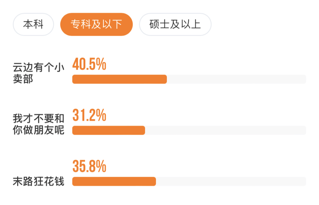 在年輕之餘,它又有明顯的下沉屬性。上映首周,《雲邊有個小賣部》在三四線城市每天都能拿下60%左右的票房佔比,顯著高於全國大盤(45%-55%之間)。更細分的畫像裏,據燈塔專業版顯示,《雲邊有個小賣部》的想看用户中,教育程度專科以下高達40.5%,也高於其它一些在下沉市場賣座的影片。