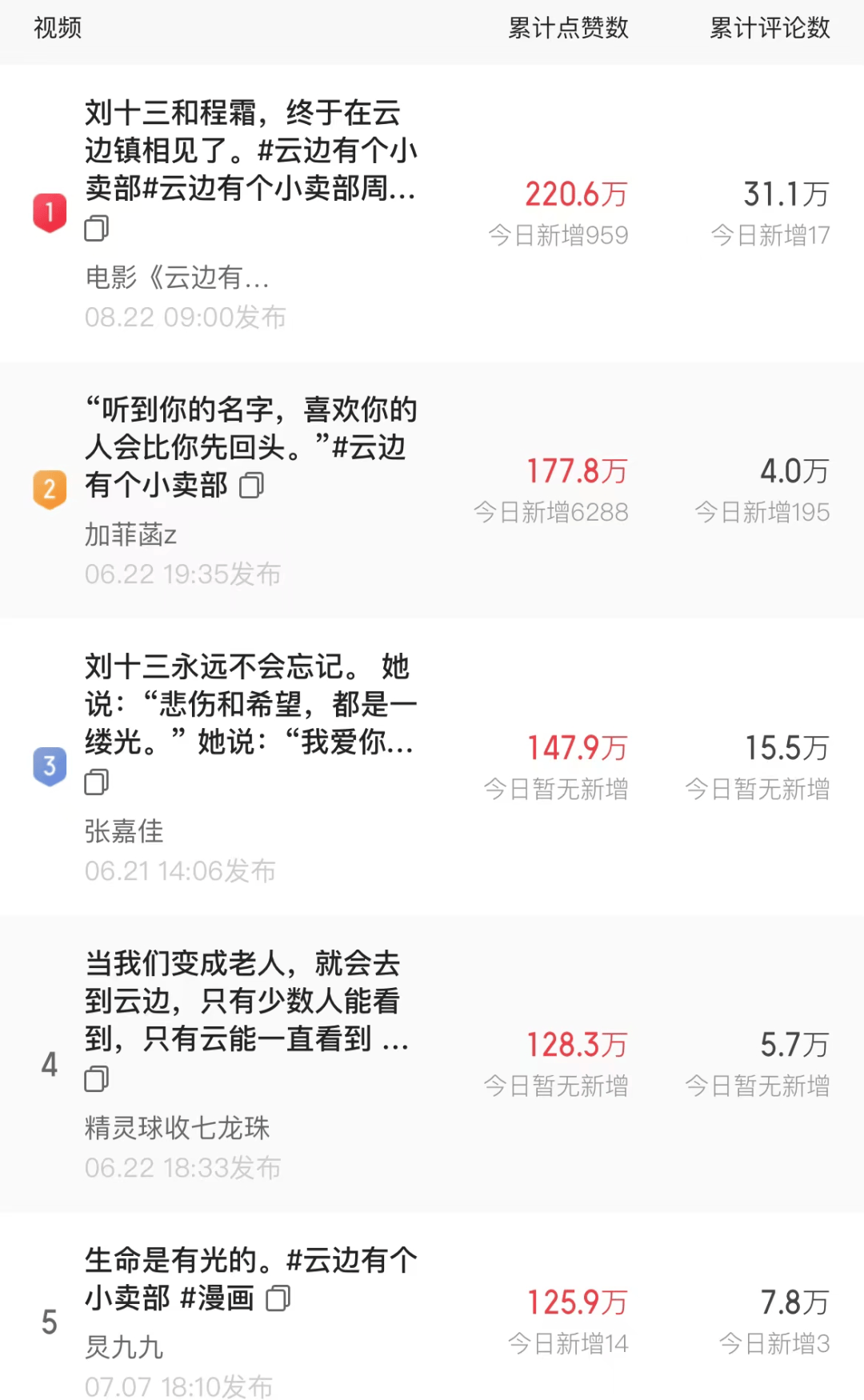 口碑和票房倒掛在今年的電影市場中已經不新鮮了,但《雲邊有個小賣部》仍然具備單拎出來討論的案例價值。比如,它雖然是80後作家張嘉佳寫的同名原著改編,但在電影院最為追捧它的人羣卻是00後——一羣中國電影行業從業者最想拉近的觀眾。又比如,和許多電影在電影宣發階段才依賴短視頻出圈不同,《雲邊有個小賣部》在它還是一本書的時候就已經靠短視頻出圈了——該書於2018年出版,但卻在2020年迎來了真正的銷量高峯期,核心推手正是短視頻。從產業的角度來看,每個人當然都希望爛片能少一點,但也希望有效擊中精準用户羣體的電影產品能多一點,更希望有機會的話能二者兼得一點。