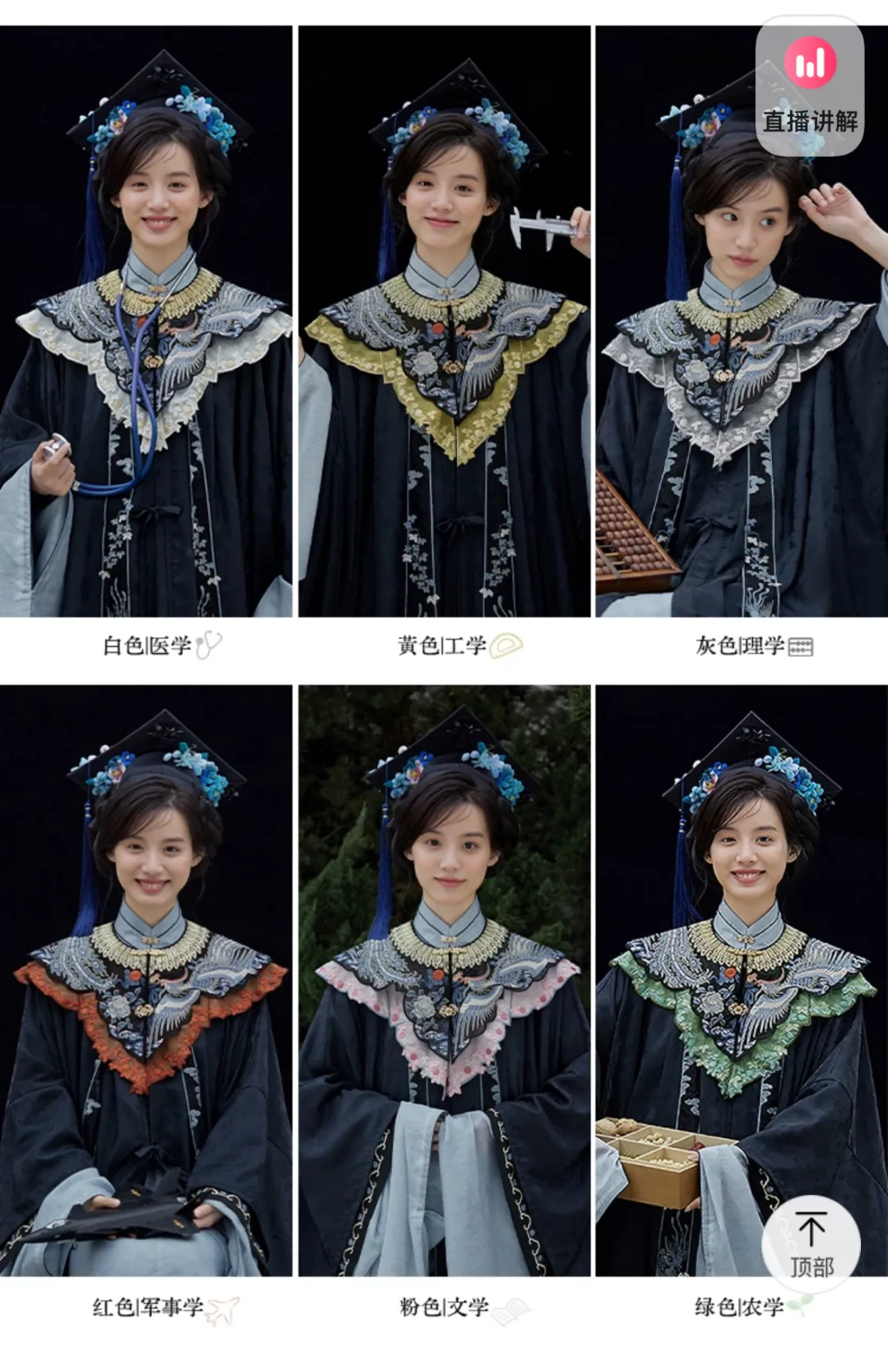 因為雲肩的發展與改良,使得軍、工、醫、文、理、農等學科門類,總能找到靚麗又適配的搭法。