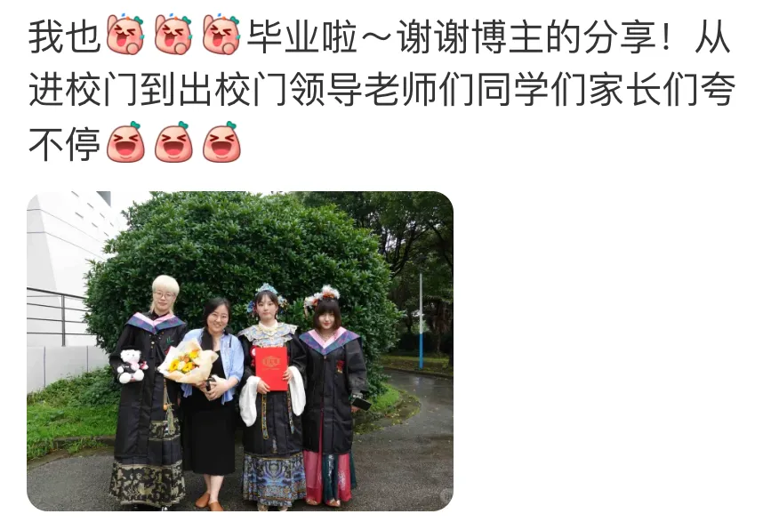 更有甚者,一些留學生也加入了國風式畢業穿搭。