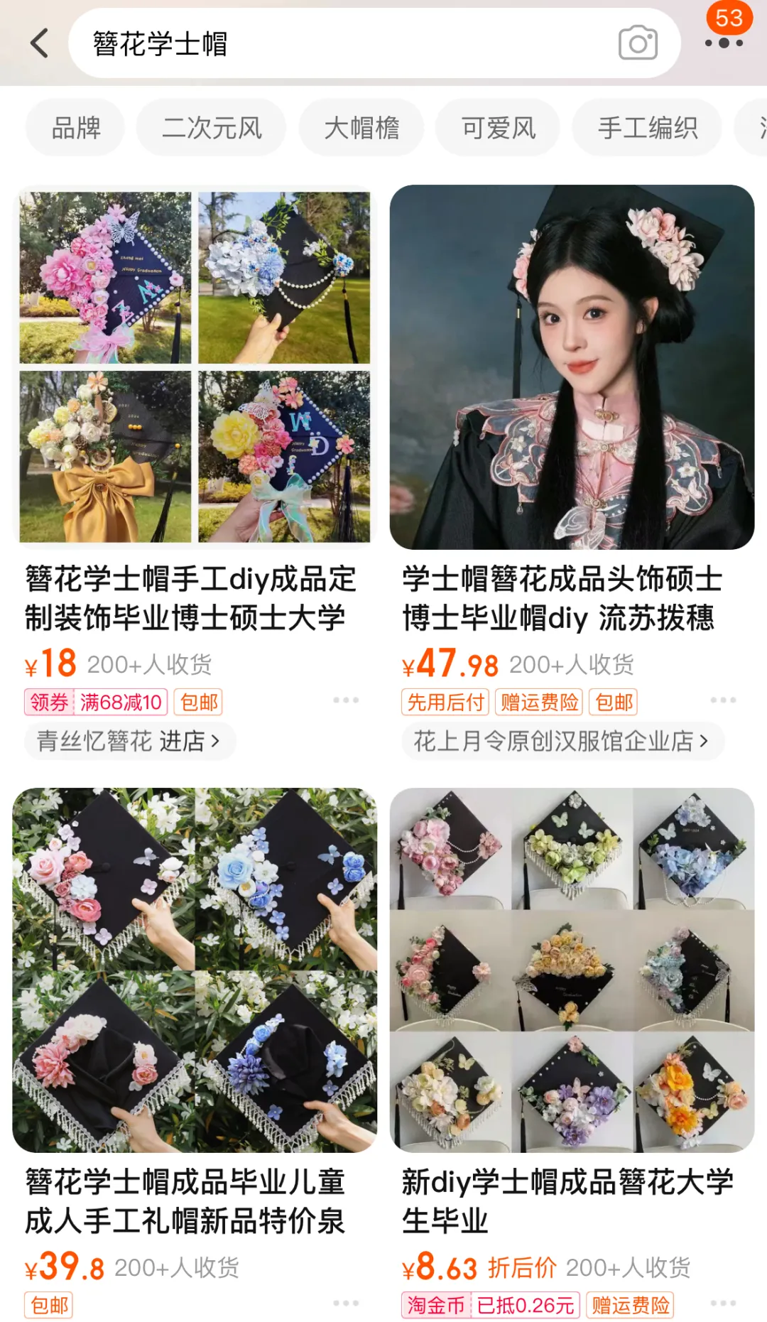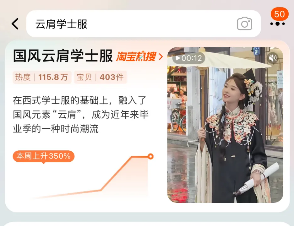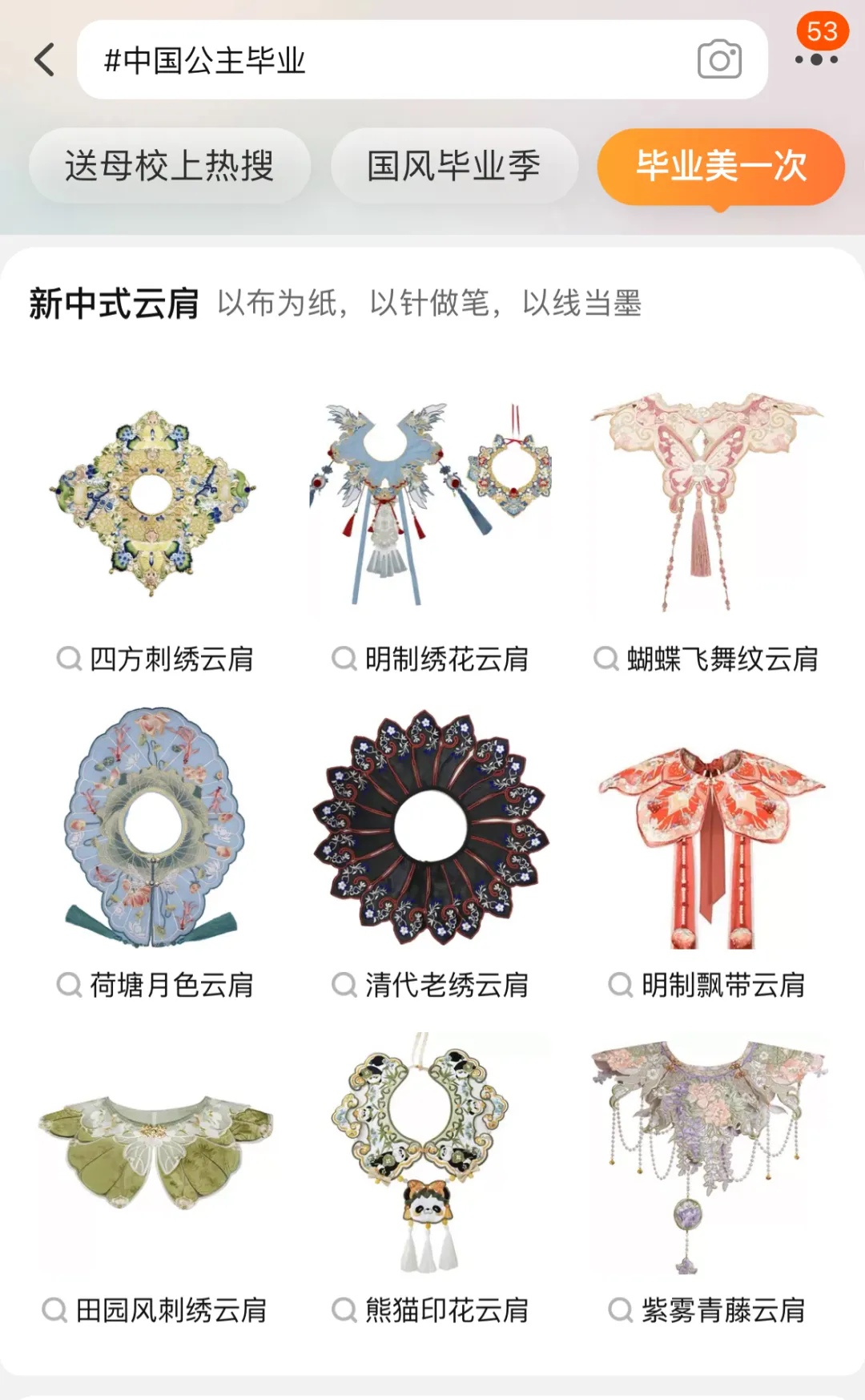 許多小年輕會去淘寶買各式各樣的雲肩搭配學士服。