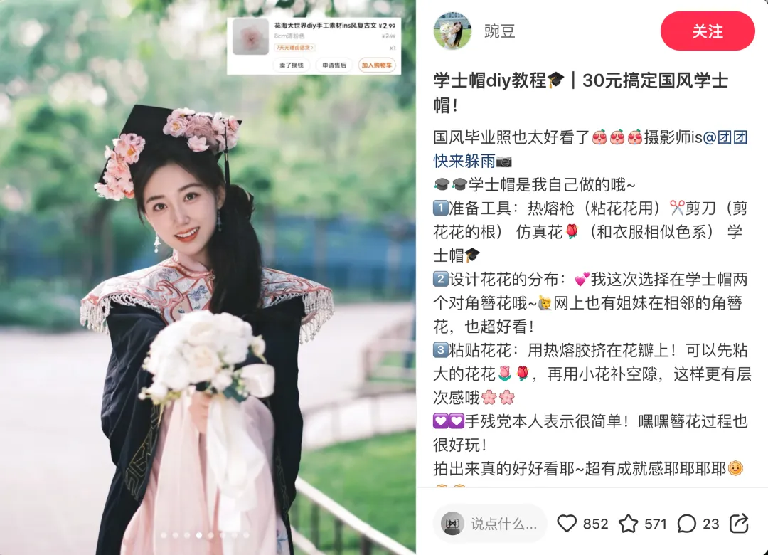 作為消費的主力軍,他們用自己的巧思,把新中式風帶進了畢業季,為自己舉辦一個儀式感滿滿的國風畢業禮。