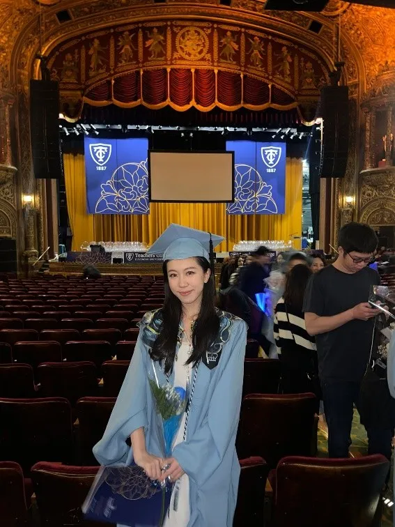 “剛好和哥倫比亞大學的藍色袍子特別搭。”