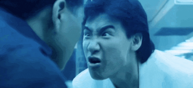 張學友扭曲的臉龐,口中吐出那句粗俗而直白的**“食屎啦你”。**