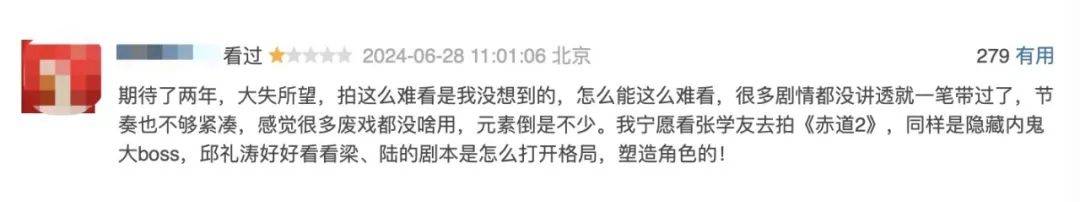 但抓內鬼的線索展開缺乏創新和深度,怎麼就通過幾個鏡頭和幾句台詞,就把周正禮的上司張允南(張學友 飾)是內鬼的事情給交代了?