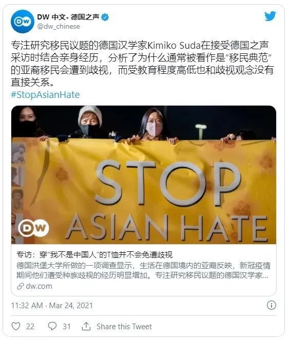 在新冠疫情期間,歐美國家對亞裔的“仇恨犯罪”也到了新高度,2021年,在美國就爆發出多起襲擊亞裔事件,一名年長的泰國移民被推倒在地之後摔死,一名菲律賓裔美國人被人用美工刀在臉上橫劃了一刀,一名華人女子被掌摑然後被點火燒身。
